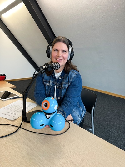 Foto: Ellen Keller-Bitzer und Dash,der sprechende Kugelroboter