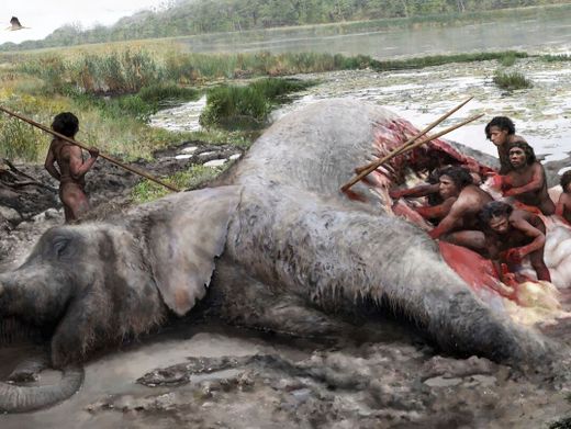 So in etwa könnte der Jagdertrag ausgesehen haben: Vermutlich überraschten die Neandertaler den Elefanten beim Trinken an einem See